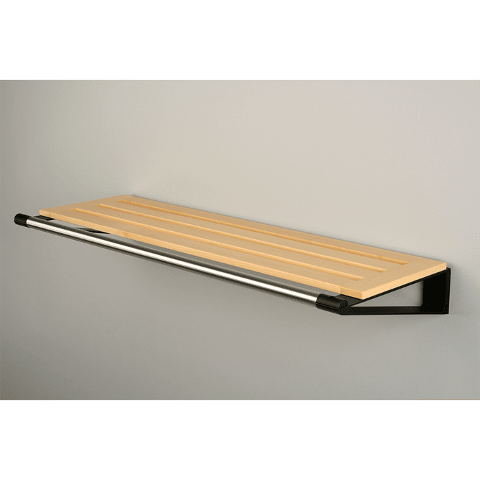 Knax hylde 8 – Hattehylde på 80 cm – Lakeret bøg Smuk Hylde 8 fra Knax er en elegant hattehylde til entréen, hvor der er godt opbevaringsplads øverst og samtidig god plads til overtøjet på bøjlestangen. Hattehylden findes med hyldeknægte i: Sort & Grå og