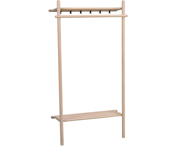 Rowico Home Milford garderobestativ i hvidpigmenteret egetræ. Milford er et tøjstativ, der passer perfekt i gangen eller soveværelset til pæn og praktisk opbevaring. Milford garderobestativet er lavet af FSC-certificeret massiv drejet egetræ. Stativet giver dig både knager, bøjlestang, hattehylde og skohylde og placeres nemt op af væggen. Rowico Milford garderobestativ – lys eg Materiale: Massiv FSC-certificeret egetræ med hvidpigmenteret finish.Mål: Højde 181 cm x Bredde 91 cm x Dybde 39 cm.